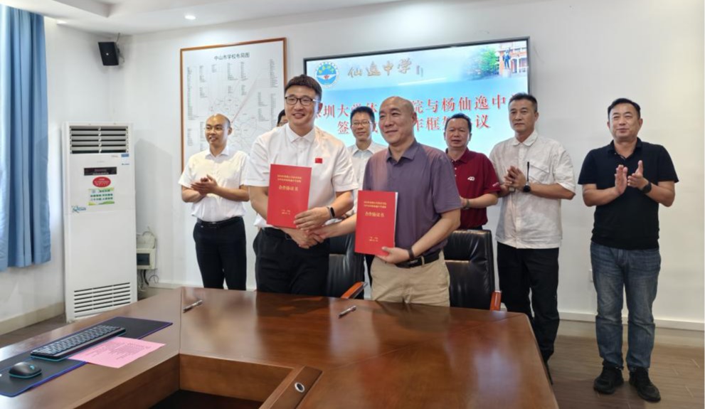 2024年7月13日,体育学院李智军书记、刘建院长一行前往中山市百年名校杨仙逸中学洽谈交流,并签署体育学院党建、实习和安全教育基地合作协议。