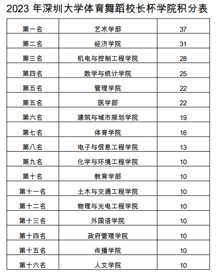 其中,学院总积分排名前三位分别是艺术学部、经济学院、机电与控制工程学院。