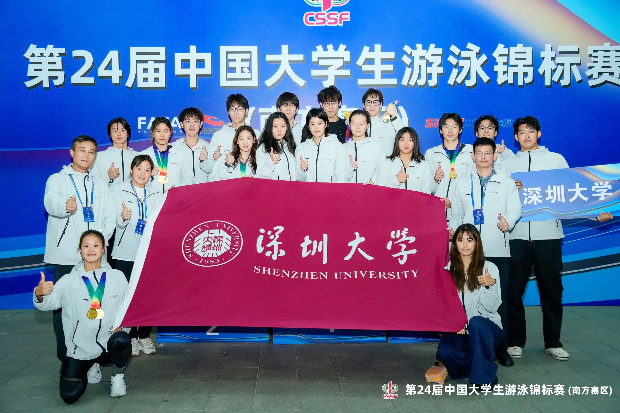 2025年11月7日至11月13日,第24届中国大学生游泳锦标赛(南方赛区)在厦门举行。本次赛事共有来自105所高校的800余名运动员参赛,色漫网 游泳队共派出16名队员参加丁组(最高水平组,专业组)和丙A组(次高水平组,专项组)等2个组别的自由泳、蛙泳、仰泳、蝶泳、个人混合泳以及接力项目的比赛。通过奋力拼搏,最终获得14金6银4铜,获丁组团体总分第一名。