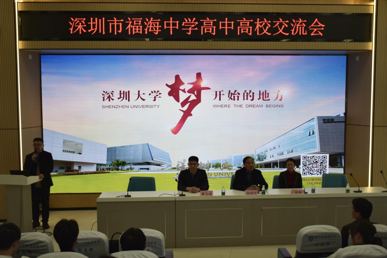 2024年12月26日受福海中学邀请,体育学院唐玉成副院长赴深圳市福海中学进行招生宣讲。深圳市福海中学,由宝安第一外国语学校(集团)引领建设,是深圳市委市政府“高起点、高规格、高标准”打造的一所现代化全寄宿制公办高中。宣讲会由福海中学候克生主任主持,参会人员有副校长胡成生、高三年级长廖振亮及高三班两个班级的学生。