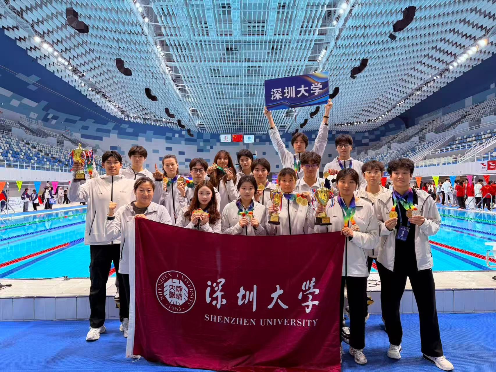 2025年11月7日至11月13日,第24届中国大学生游泳锦标赛(南方赛区)在厦门举行。本次赛事共有来自105所高校的800余名运动员参赛,色漫网 游泳队共派出16名队员参加丁组(最高水平组,专业组)和丙A组(次高水平组,专项组)等2个组别的自由泳、蛙泳、仰泳、蝶泳、个人混合泳以及接力项目的比赛。通过奋力拼搏,最终获得14金6银4铜,获丁组团体总分第一名。