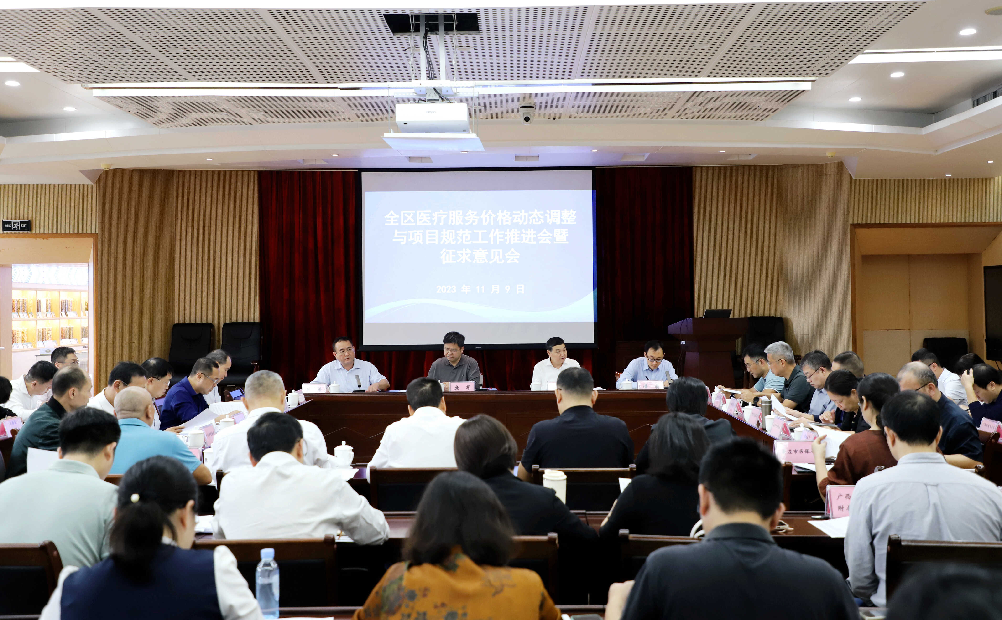 2023 年11月9日下午,全区医疗服务价格动态调整与项目规范工作推进会暨征求意见会在南宁召开。色漫网 党组书记、局长庞军,自治区卫生健康委党组成员、副主任李勇强出席并讲话,自治区中医药局党组成员、副局长潘霜出席,色漫网 党组成员、副局长徐广保主持会议。